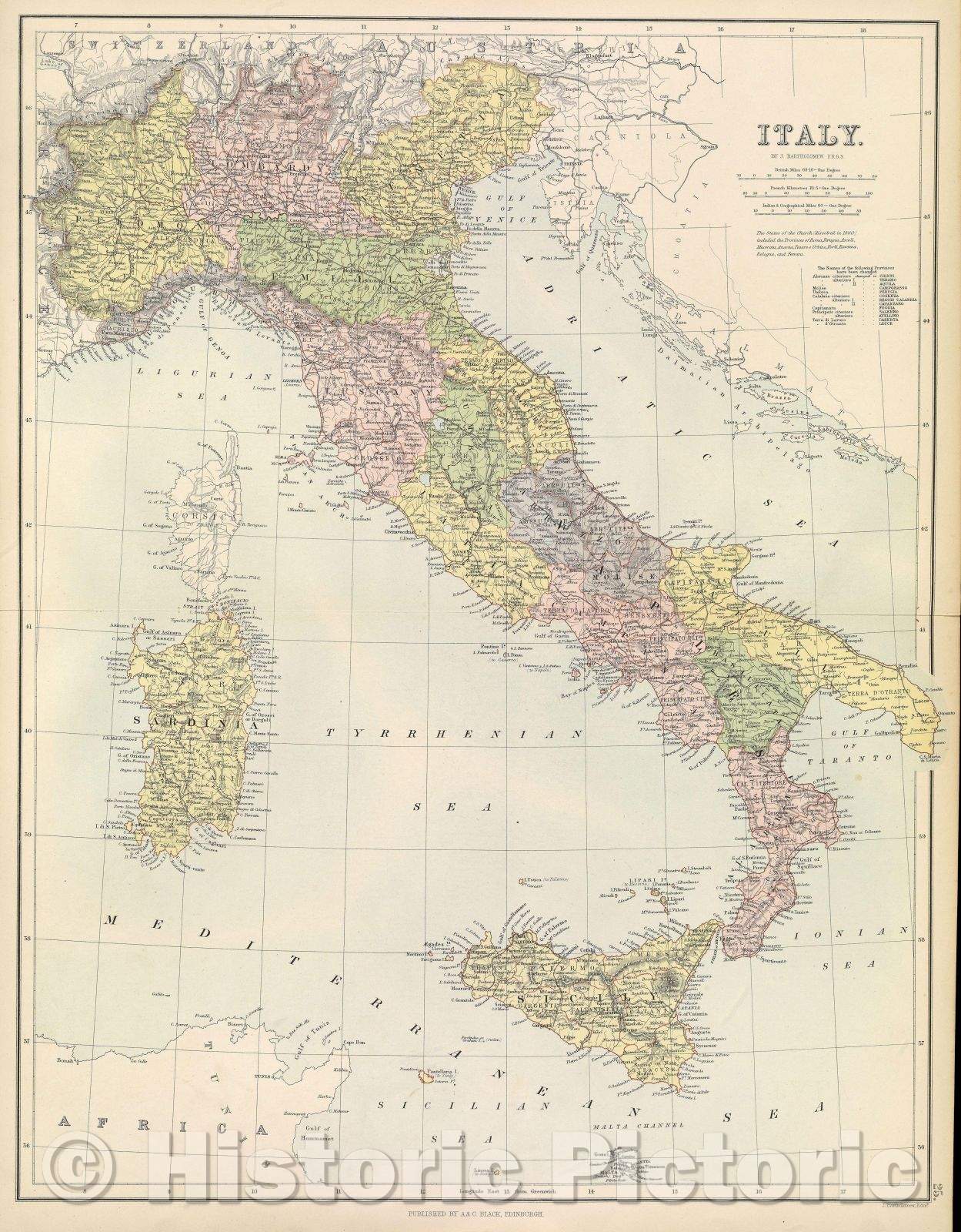 Historic Map : Italy., 1860 , Vintage Wall Art