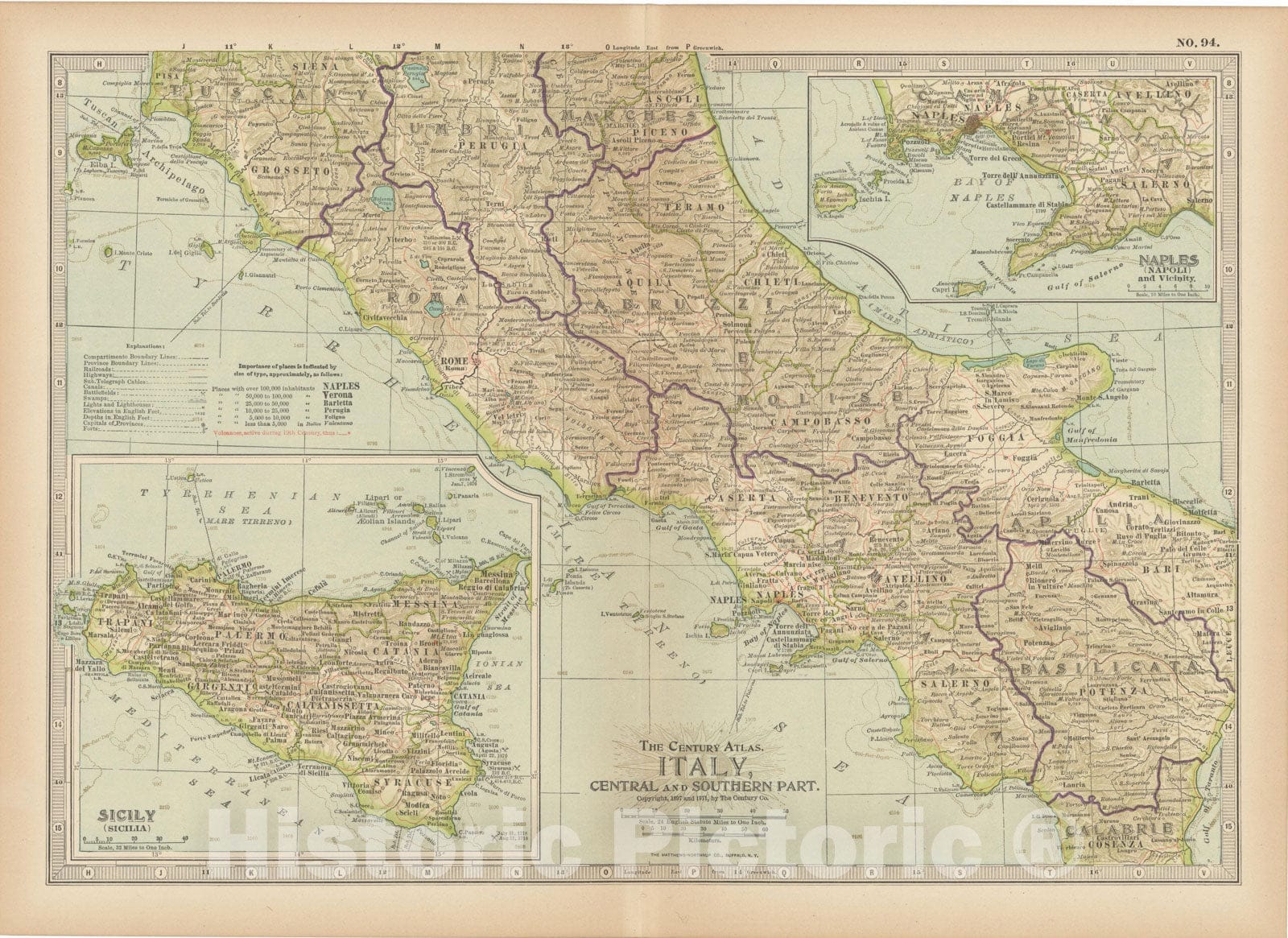 Historic Map : Italy 1914 , Century Atlas of the World, v2, Vintage Wall Art