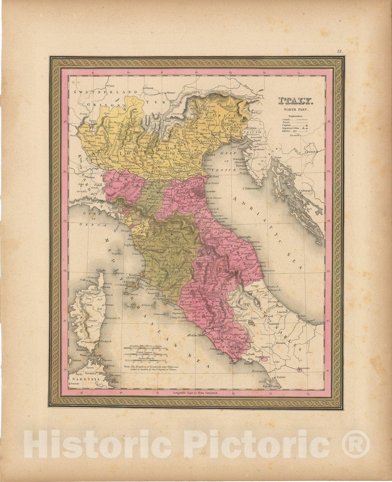 • .Historic Map : Northern & Central Italy 1847 , A New Universal Atlas of the World , Vintage Wall Art