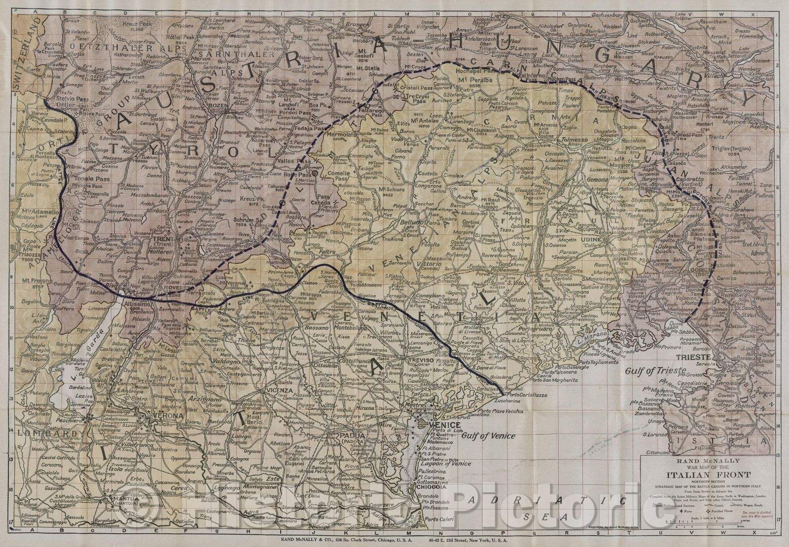 • .Historic Map : Rand McNally war map of the Italian front : northern section : strategic map of the battle ground in northern Italy from Swiss border to Adriatic Sea, 1917 , Vintage Wall Art