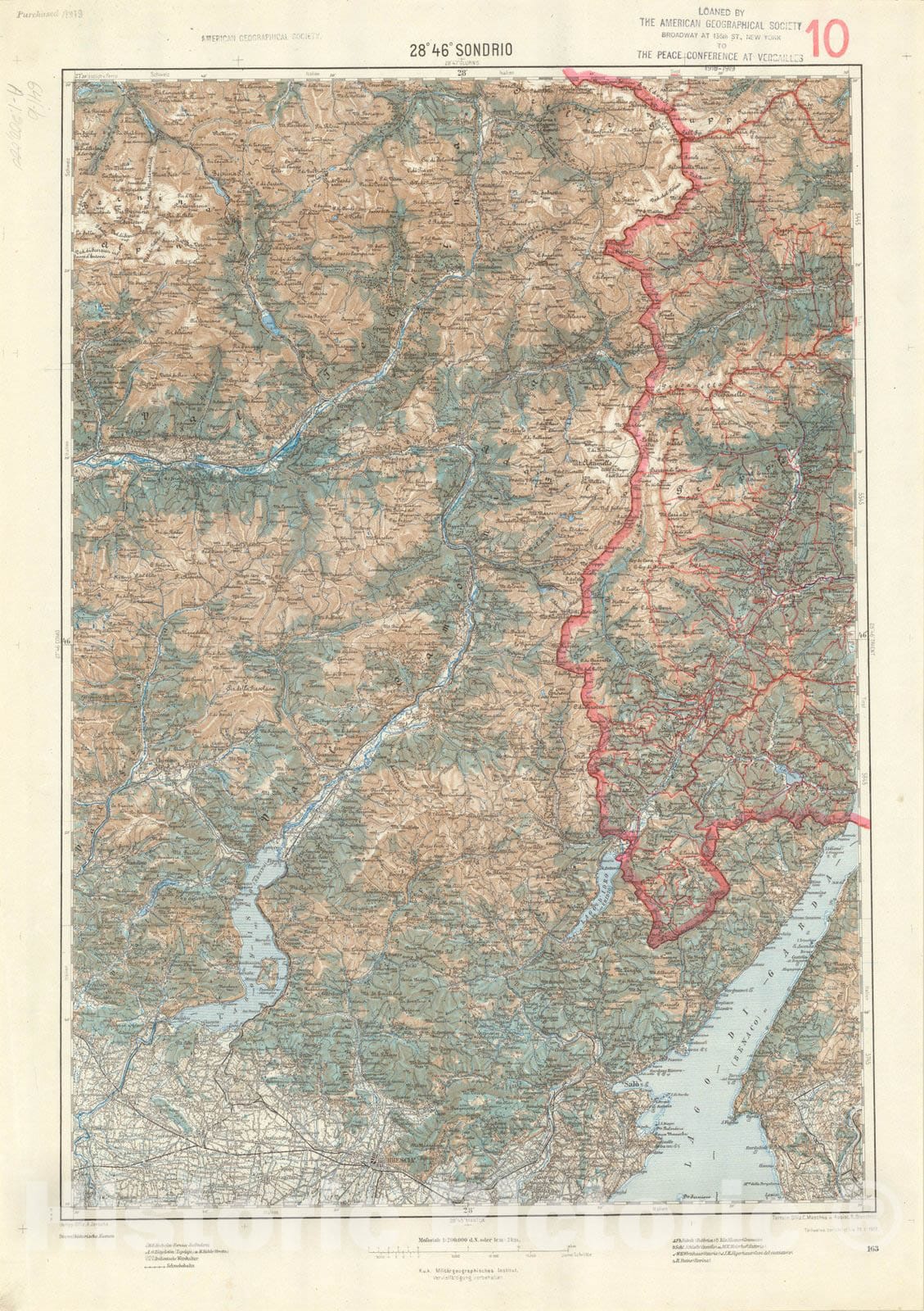 Map : Sondrio, Italy 1917, Generalkarte von Mitteleuropa, Antique Vintage Reproduction