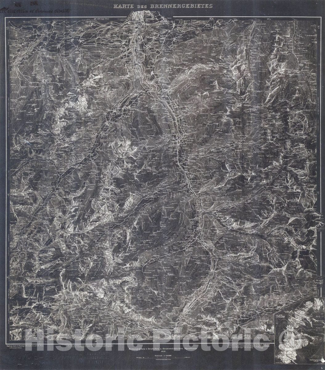 Map : Tirol lakes regiona, Italy 1920, Karte des Brennergebietes , Antique Vintage Reproduction