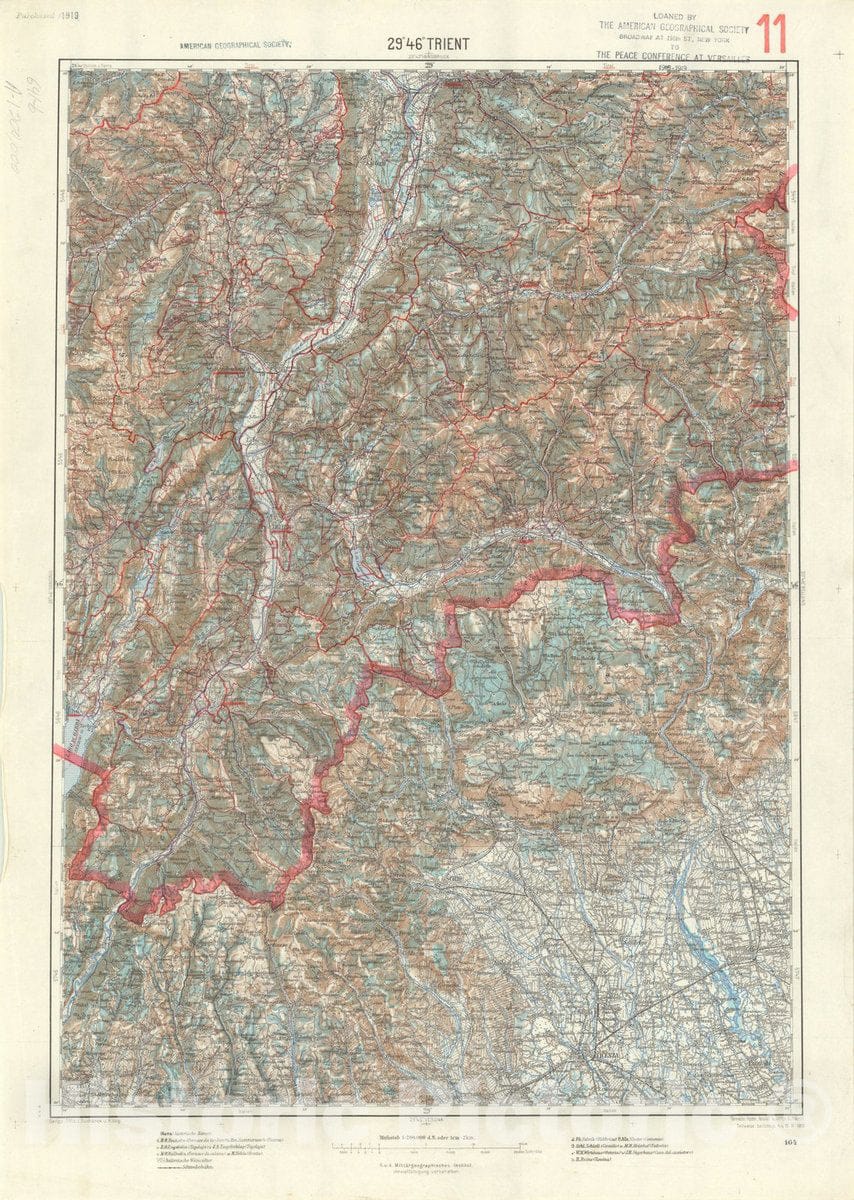 Map : Trient, Italy1918, Generalkarte von Mitteleuropa, Antique Vintage Reproduction
