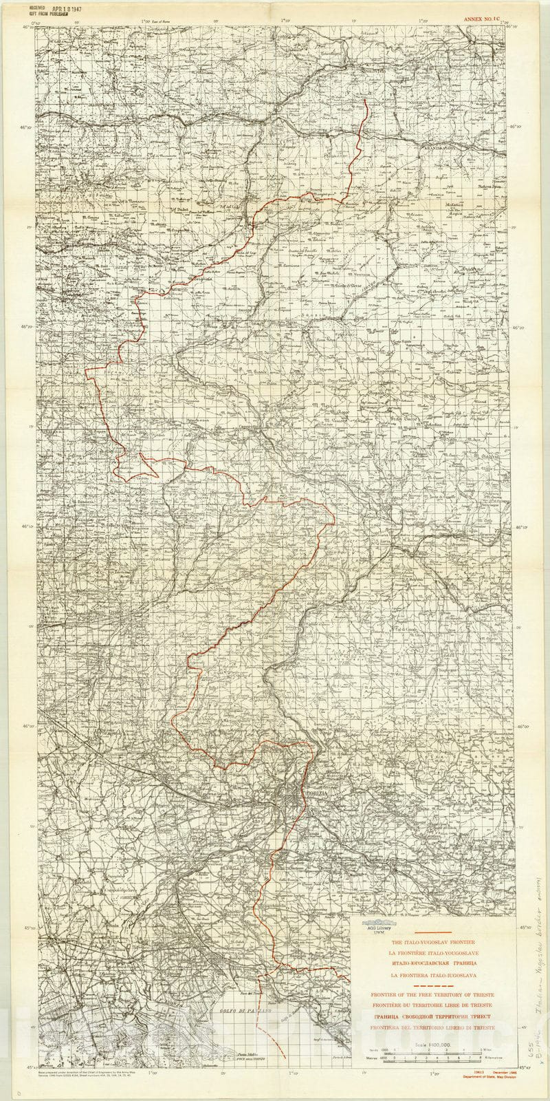 The Italo-Yugoslav frontier Frontier of the free territory of Trieste / Department of State, Map Division