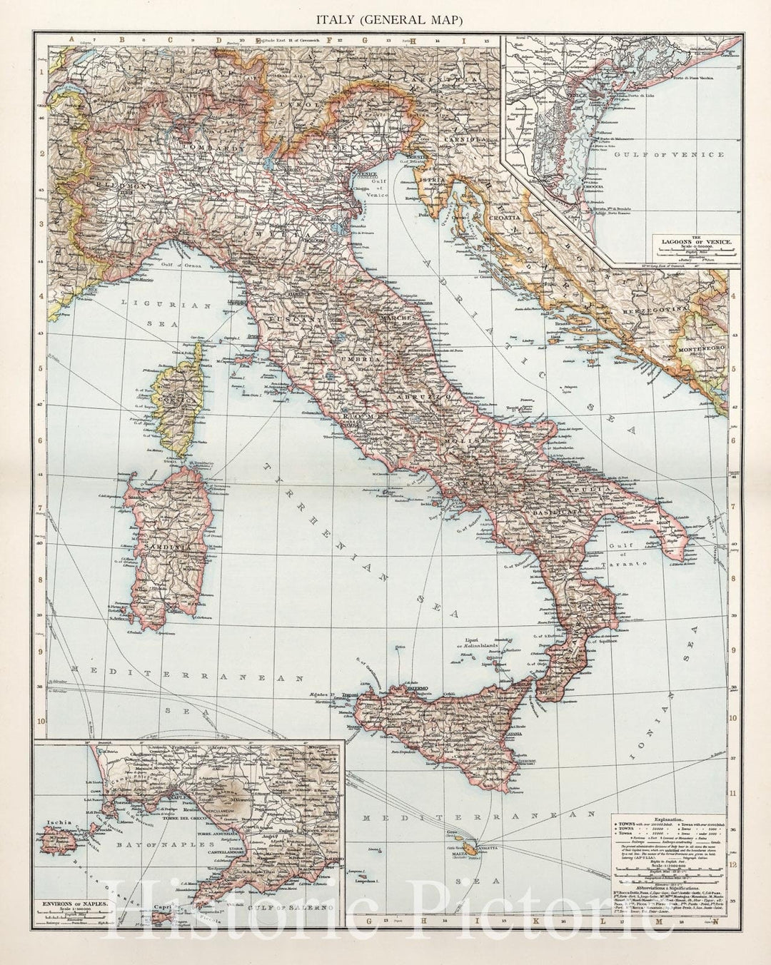 Historic Map : Italy (General map), 1900, Vintage Wall Art
