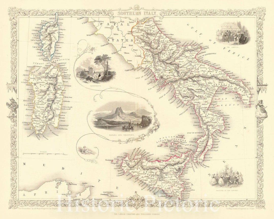 Historic Map : 1869 Southern Italy. - Vintage Wall Art