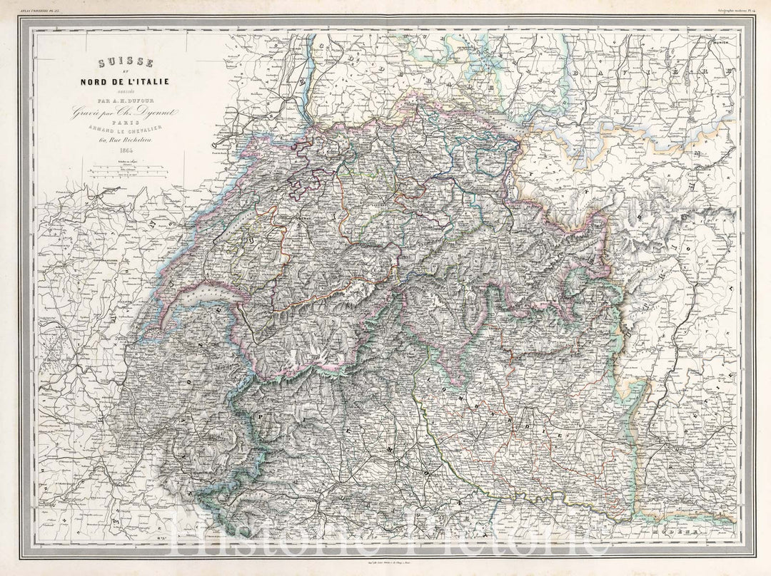 Historic Map : Dufour Map of Switzerland and Northern Italy, 1861, Vintage Wall Art