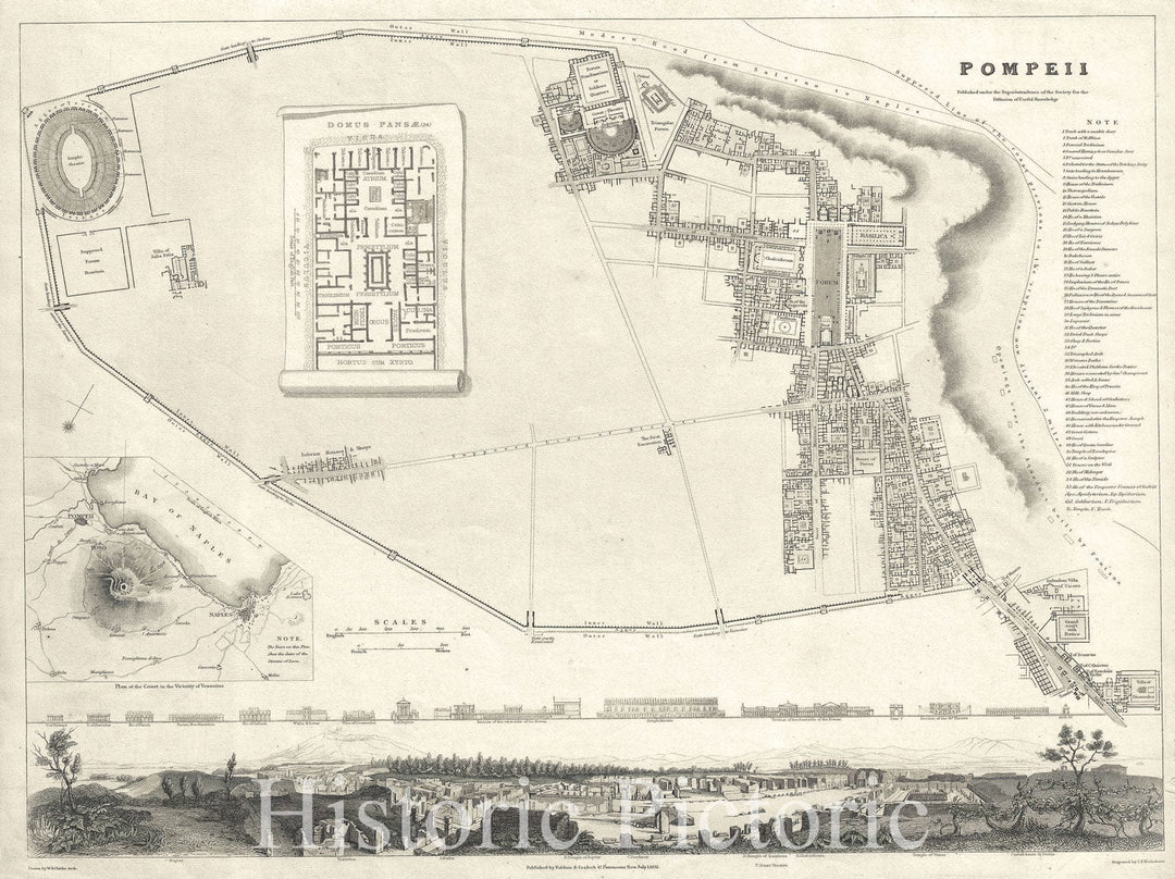 Historic Map : Plan of Pompeii, Italy, S.D.U.K., 1832, Vintage Wall Art