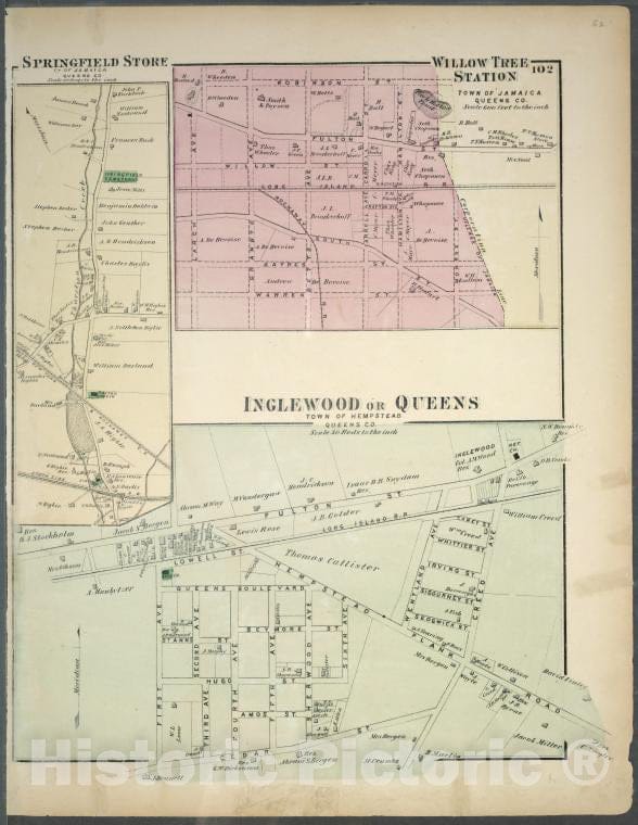 Historic 1873 Map - Springfield Store. Tn. Of Jamaica, Queens Co. - Willow Tree Stat
