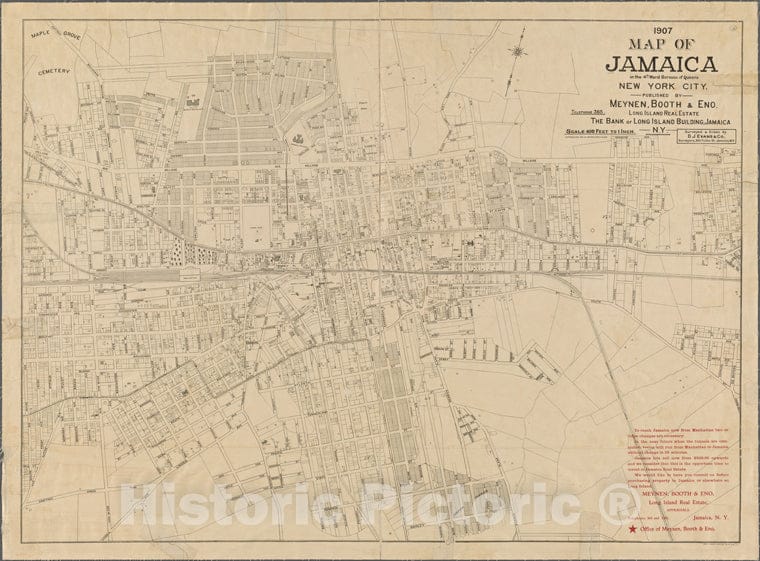 Historic 1907 Map - Map Of Jamaica, In The 4Th Ward, Borough Of Queens, New York City.Of New York City And State - Queens