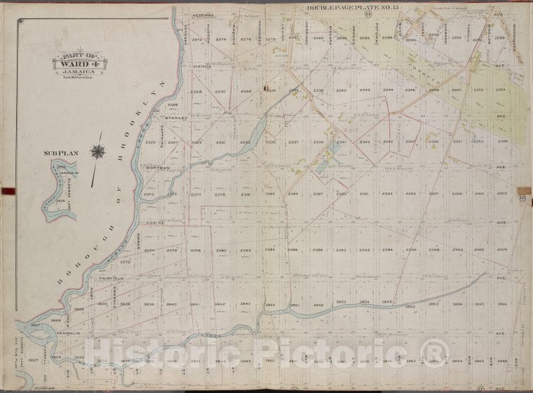 Historic 1913 Map - Queens, V. 1, Double Page Plate No. 15; Part Of Jamaica, Ward 4;