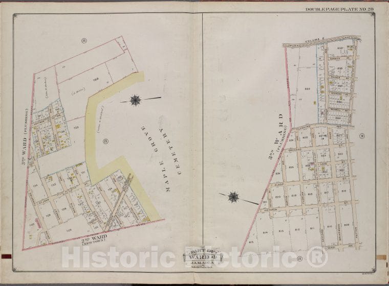 Historic 1913 Map - Queens, V. 1, Double Page Plate No. 28; Part Of Jamaica, Ward 4;