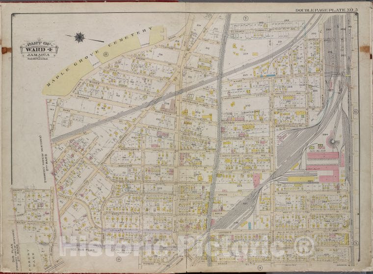 Historic 1913 Map - Queens, V. 1, Double Page Plate No. 5; Part Of Jamaica, Ward 4;
