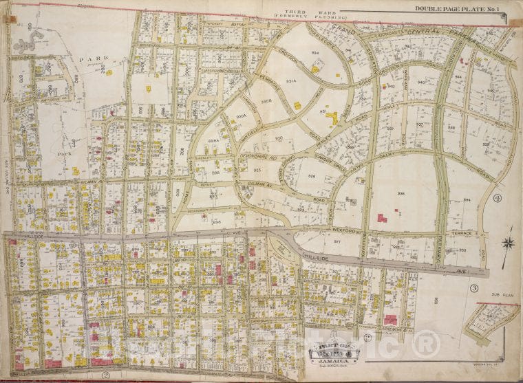 Historic 1913 Map - Queens, Vol. 1A, Double Page Plate No. 1; Part Of Ward 4 Jamaica