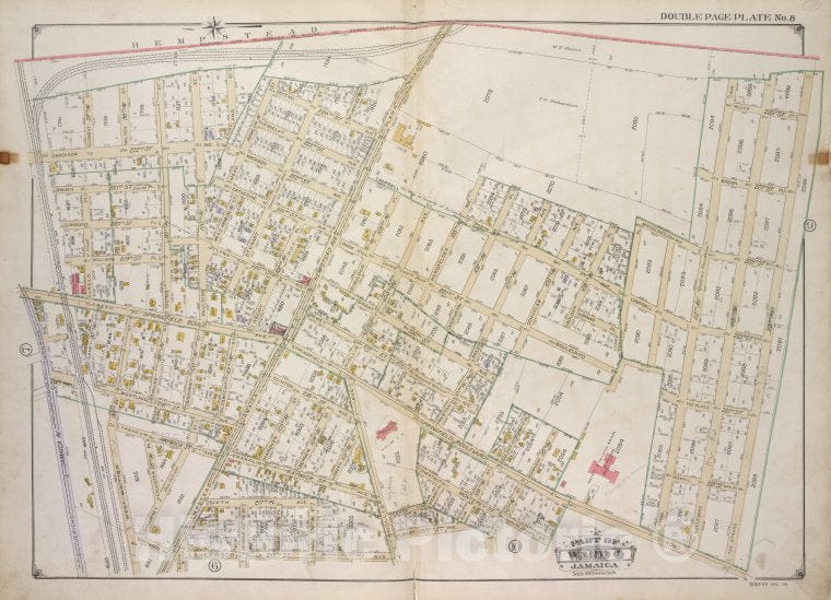 Historic 1913 Map - Queens, Vol. 1A, Double Page Plate No. 8; Part Of Ward 4 Jamaica