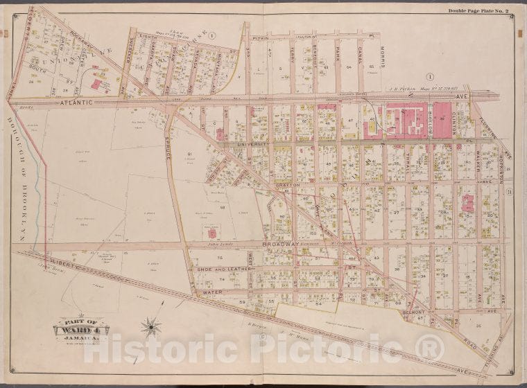 Historic Map - 1901 Queens County, New York (N.Y.), Queens, V. 1, Plate No. 2; Part Of Jamaica, Ward 4; [Pitkin Pl, Hopkinton Ave, Liberty Ave, Elderts Ln.] - Vintage Wall Art