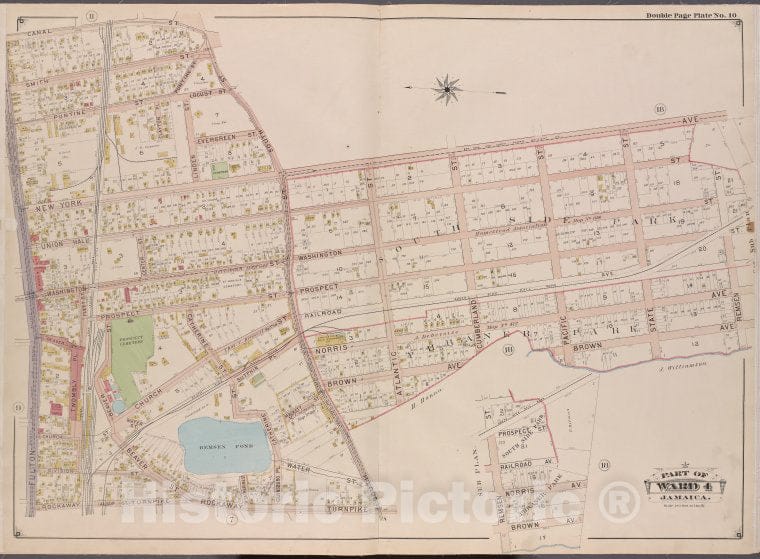 Historic Map - 1901 Queens County, New York (N.Y.) Queens, V. 1, Plate No. 10; Part Of Jamaica, Ward 4; [Canal, New York, Remsen, Brown, Rockaway Tpk, Fulton.