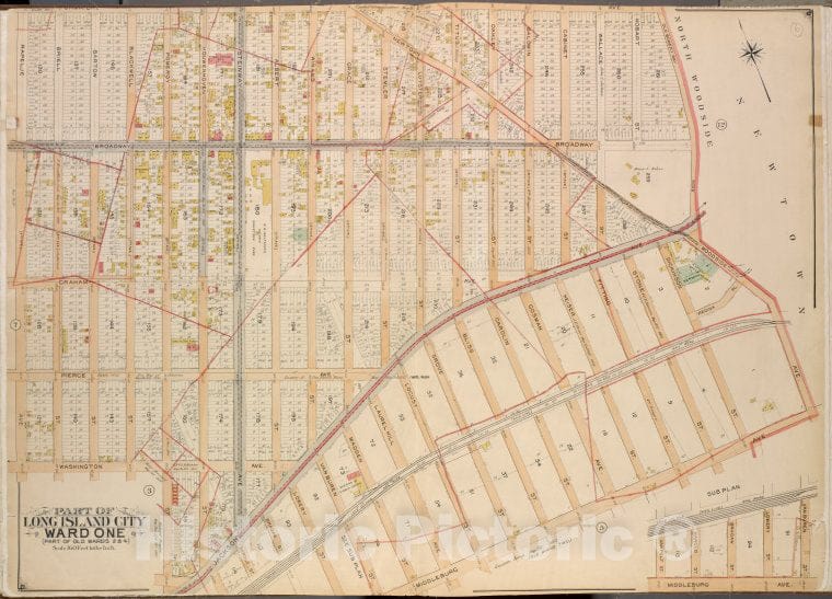 • .Historic Map - 1903 Queens County, New York (N.Y.), Queens, Long Island City Ward One (Old Wards Two And Four); Jamaica, Old Bowery Bay Road, Woodside, Middleburg - Vintage Wall Art