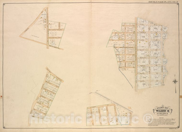 • Historic Map - 1907 Queens, New York (N.Y.) Ward 4; Jamaica; [Farmers, New York, Belvedere, Chalfonte, Road To Powells Mill, Pleasant Pl; Including 4Th, 5Th, 6Th - Vintage Wall Art