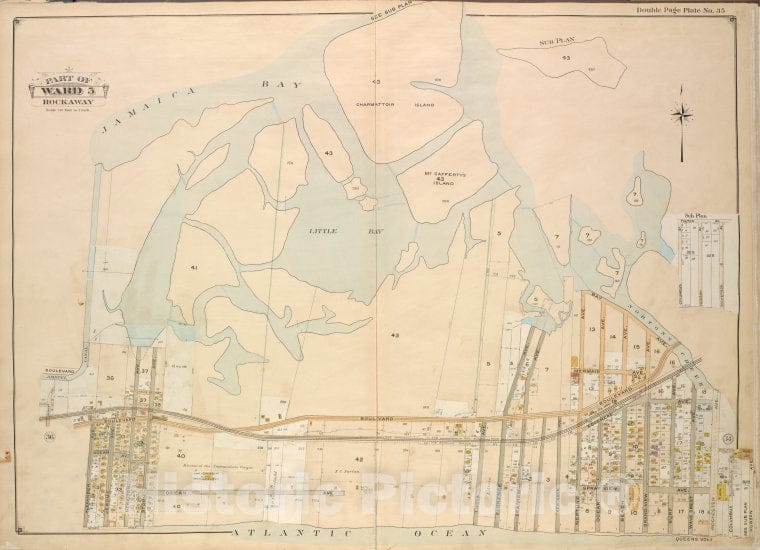 Historic Map - 1907 Queens, New York (N.Y.) Ward 5; Rockaway; [Jamaica Bay, Charmttoir Island, Mc. Caffertys Island, Nortons Creek, Hudson, Columbus, Rochester - Vintage Wall Art