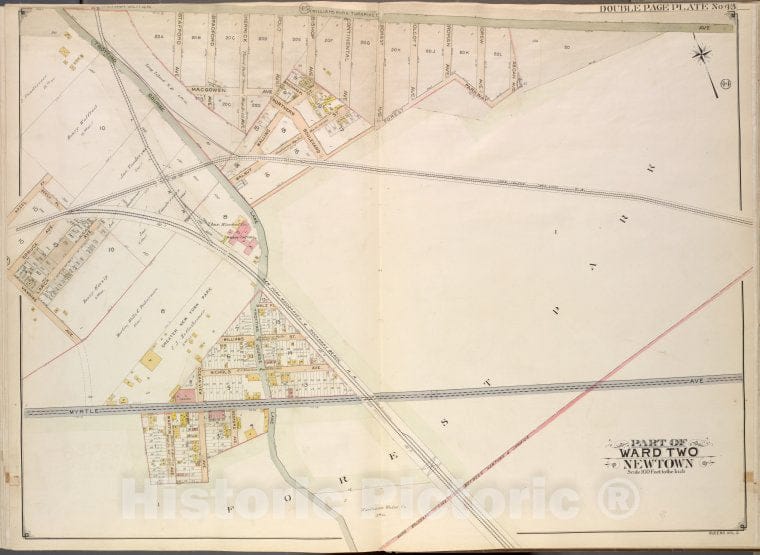 • .Historic Map - 1908 Queens, Ward Two Newtown, Metropolitan (Williams Burg Turnpike), Newtown And Jamaica, Myrtle, Trotting Course Lane, O - Vintage Wall Art