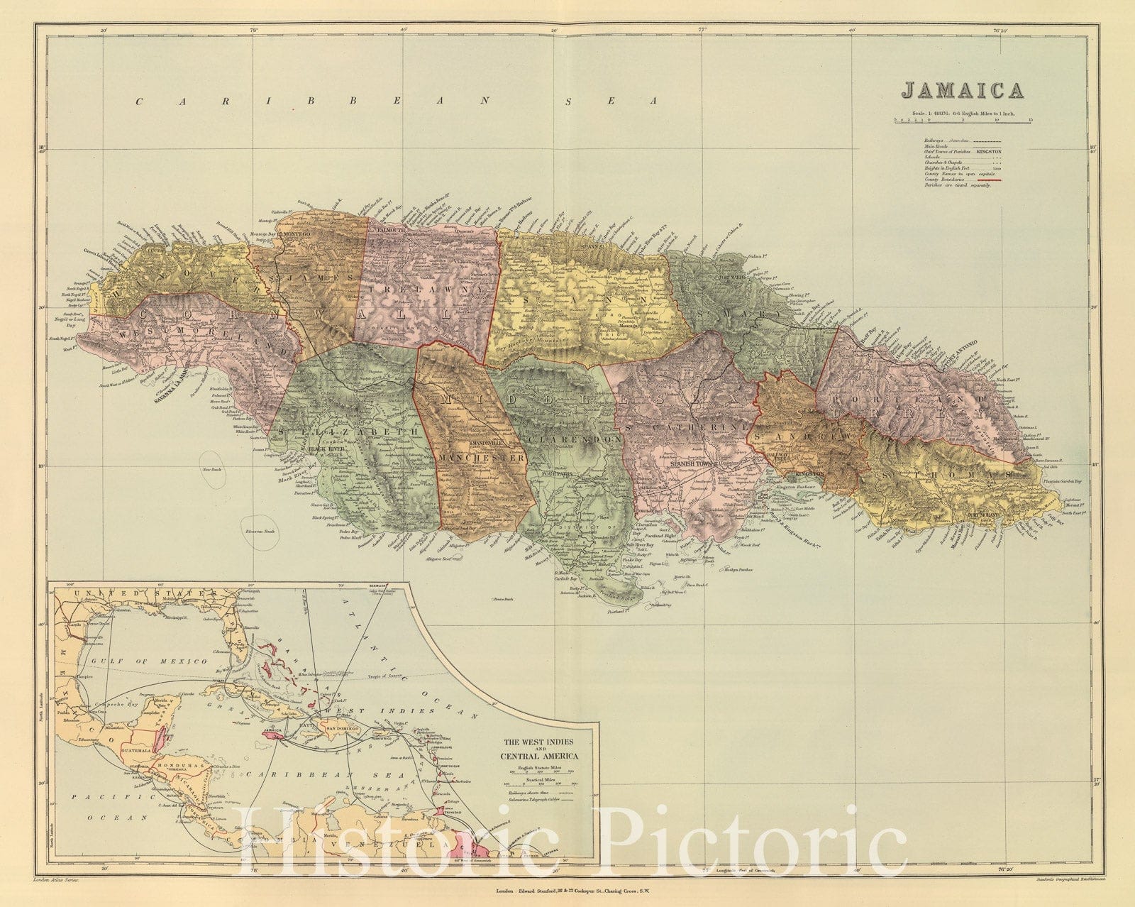 Historic Map : 46. Nova Designatio Insulae Jamaica, 1730 Atlas - Vintage Wall Art