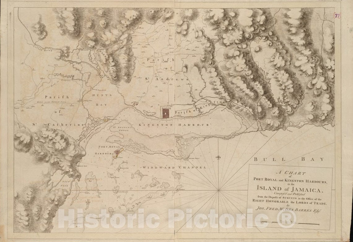• .Historical Map, 1781 A Chart of Port Royal and Kingston Harbours, in The Island of Jamaica, Vintage Wall Art