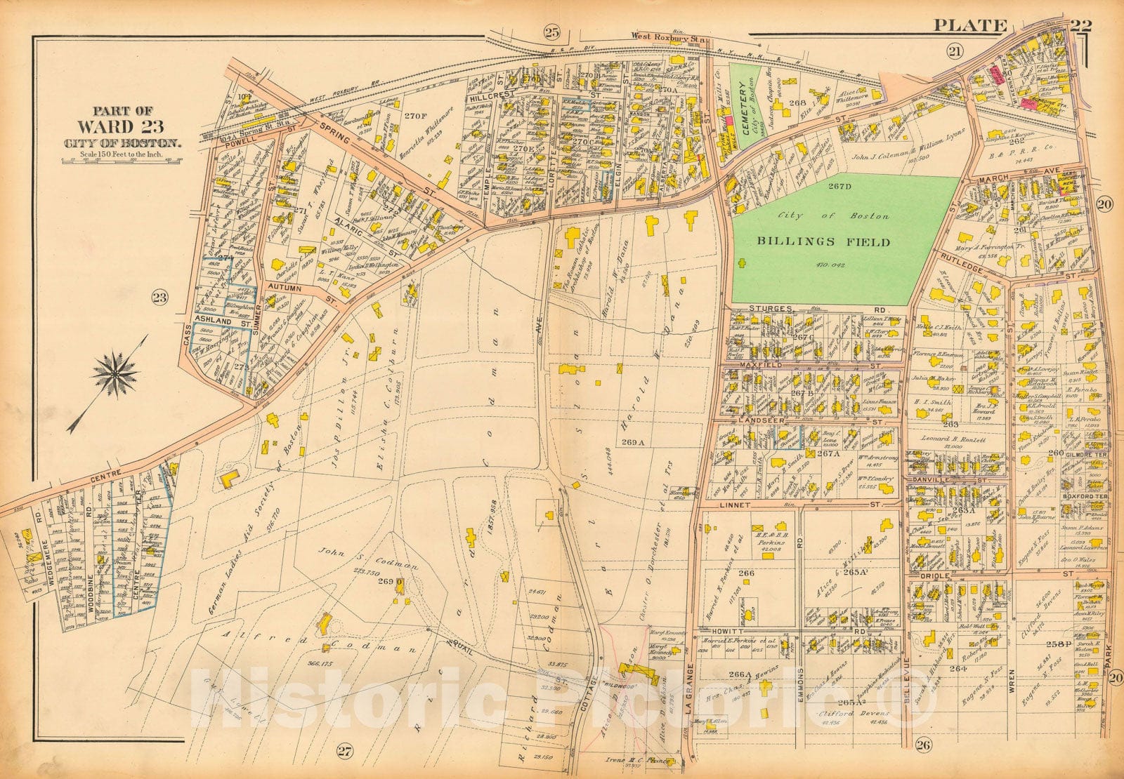 Historic Map : Atlas City of Boston, West Roxbury, Jamaica Plain 1914 Plate 022 , Vintage Wall Art
