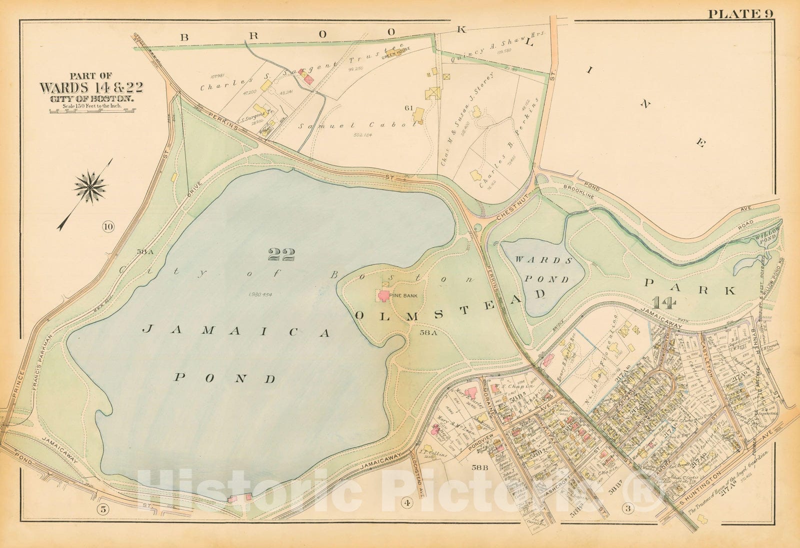 Historic Map : Atlas City of Boston, West Roxbury, Jamaica Plain 1924 Plate 009 , Vintage Wall Art