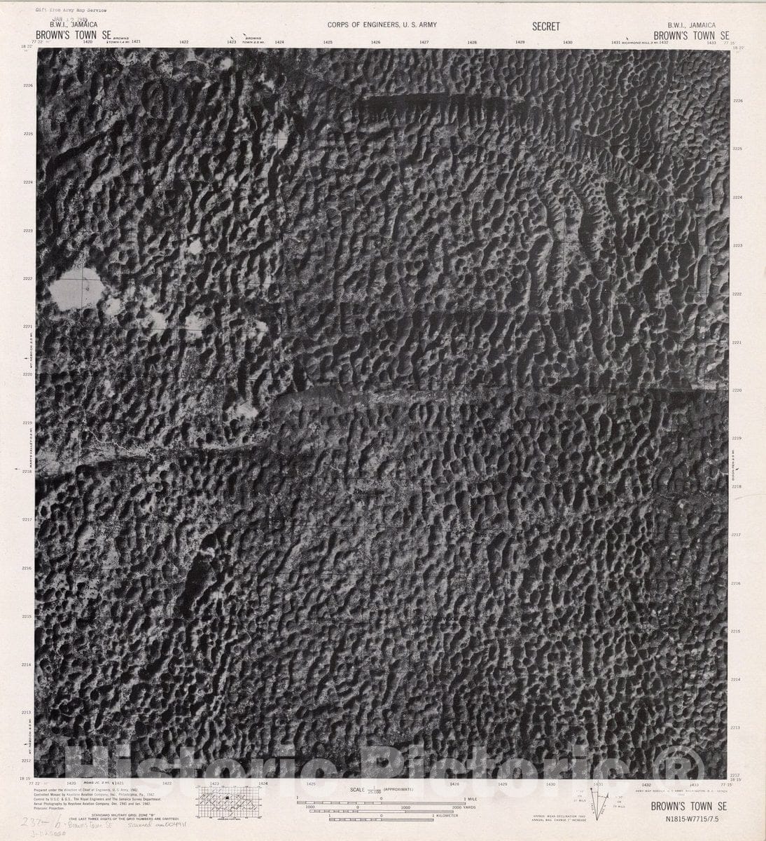 Map : Brown's Town SE, Jamaica 1942, Jamaica B.W.I. 1:62,500, Antique Vintage Reproduction