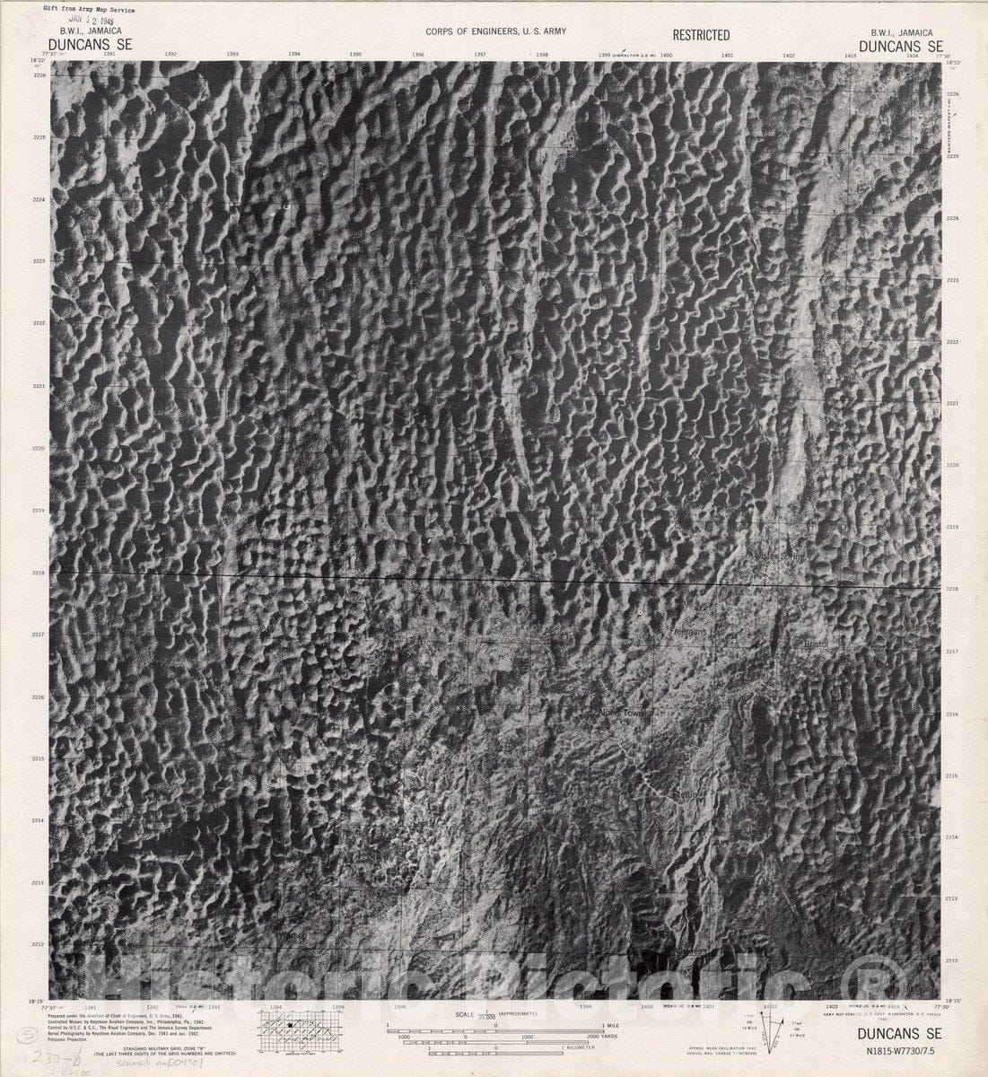 Map : Duncans SE, Jamaica 1942, Jamaica B.W.I. 1:62,500, Antique Vintage Reproduction
