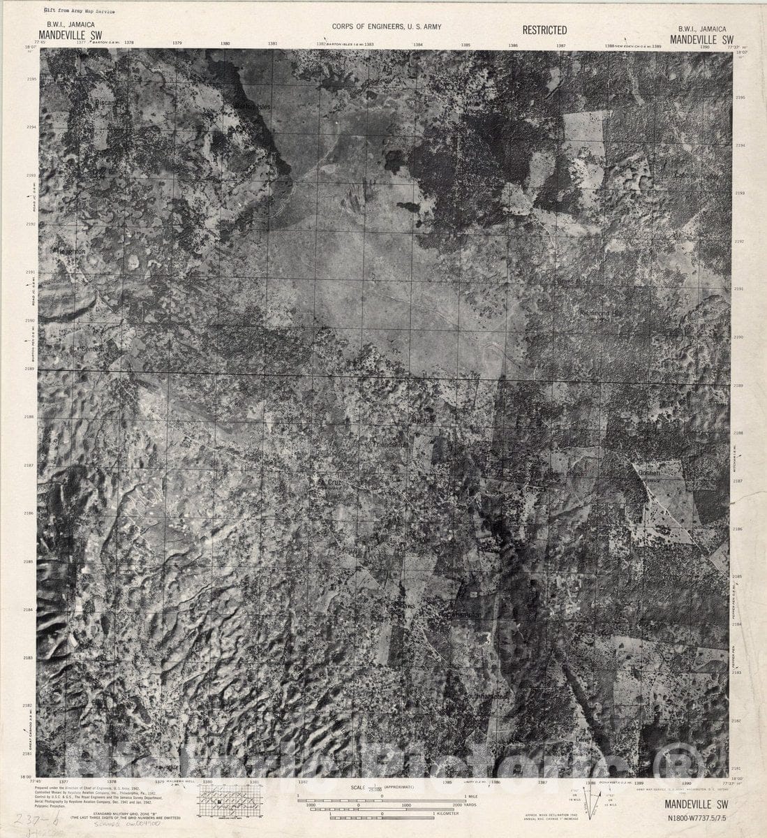 Map : Mandeville SW, Jamaica 1942, Jamaica B.W.I. 1:62,500, Antique Vintage Reproduction