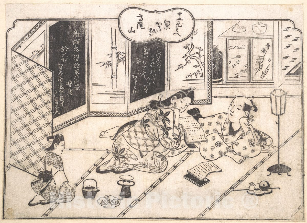 • .Art Print : Hishikawa Moronobu - Go to Takaoyama to See Maple Leaves Having Twelve Points - Japan : Vintage Wall Art