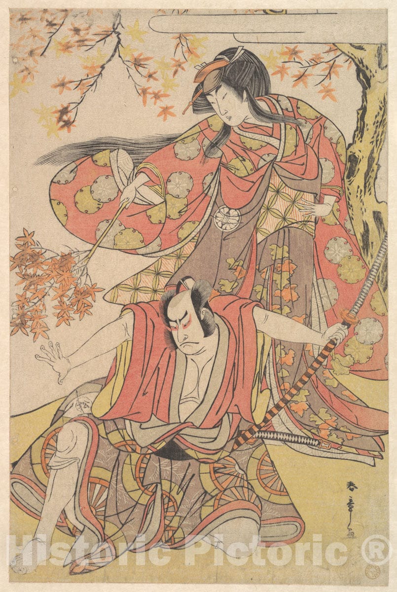 Art Print : Katsukawa Shunshō - Segawa Kikunojo III as a Woman Standing Under a Maple Tree in The Autumn - Japan : Vintage Wall Art