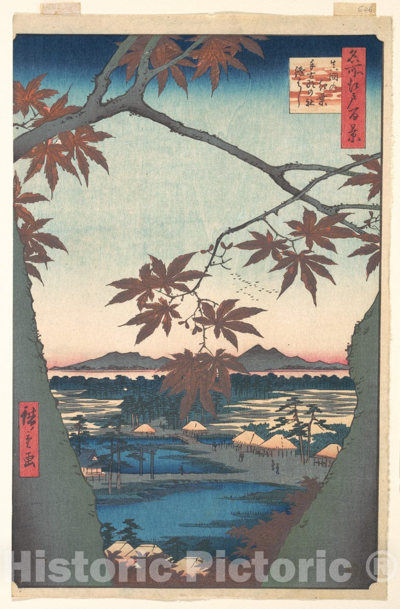 Art Print : Utagawa Hiroshige - Maples at Mama, from The Series One Hundred Famous Views of Edo - Japan : Vintage Wall Art