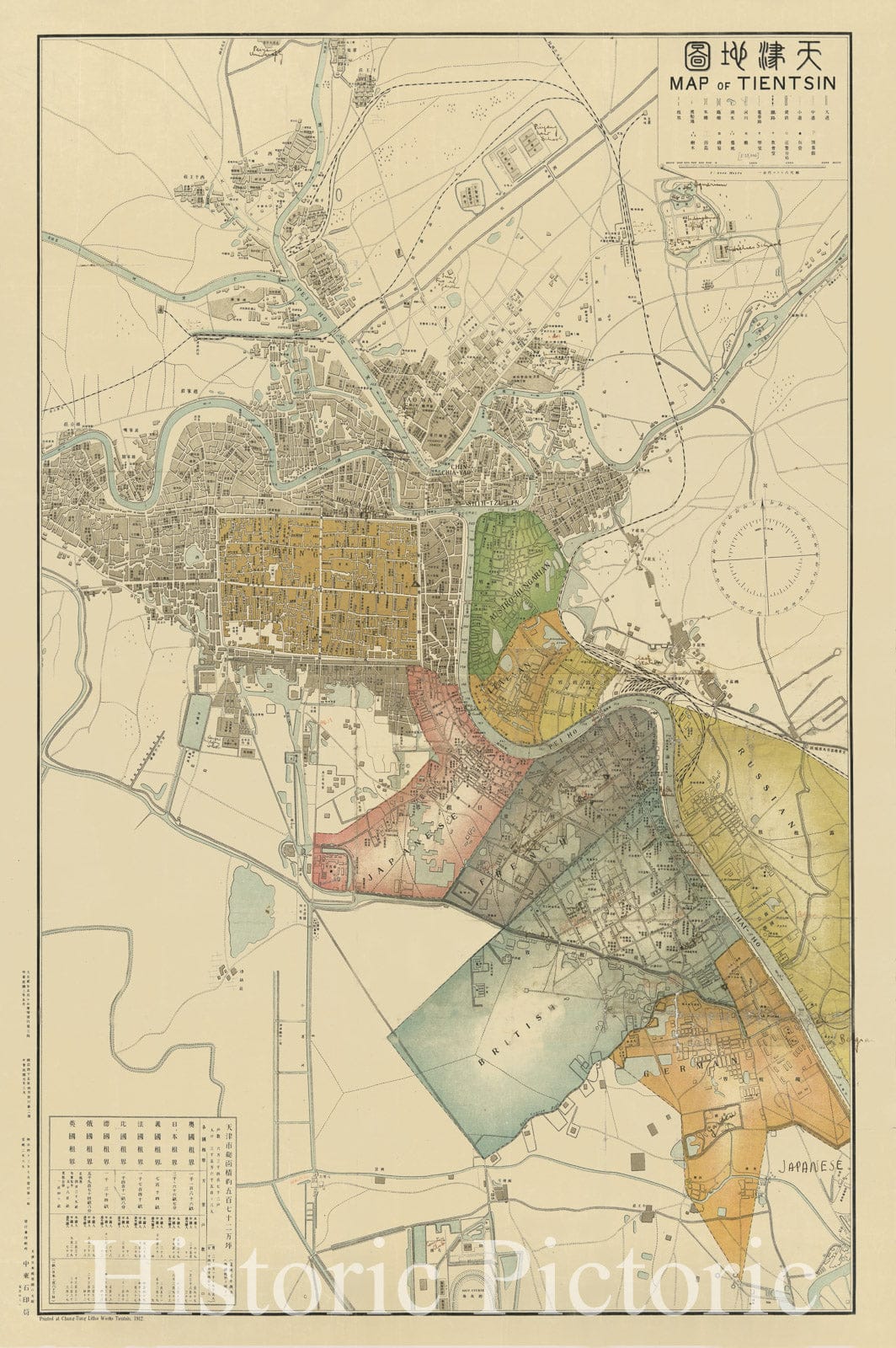 Historic 1912 Map - Plan of Italian Concession Tientsin, Plan of Japanese Concession Tientsin, Plan of British Concession Tientsin, Plan of French Concession Tientsin