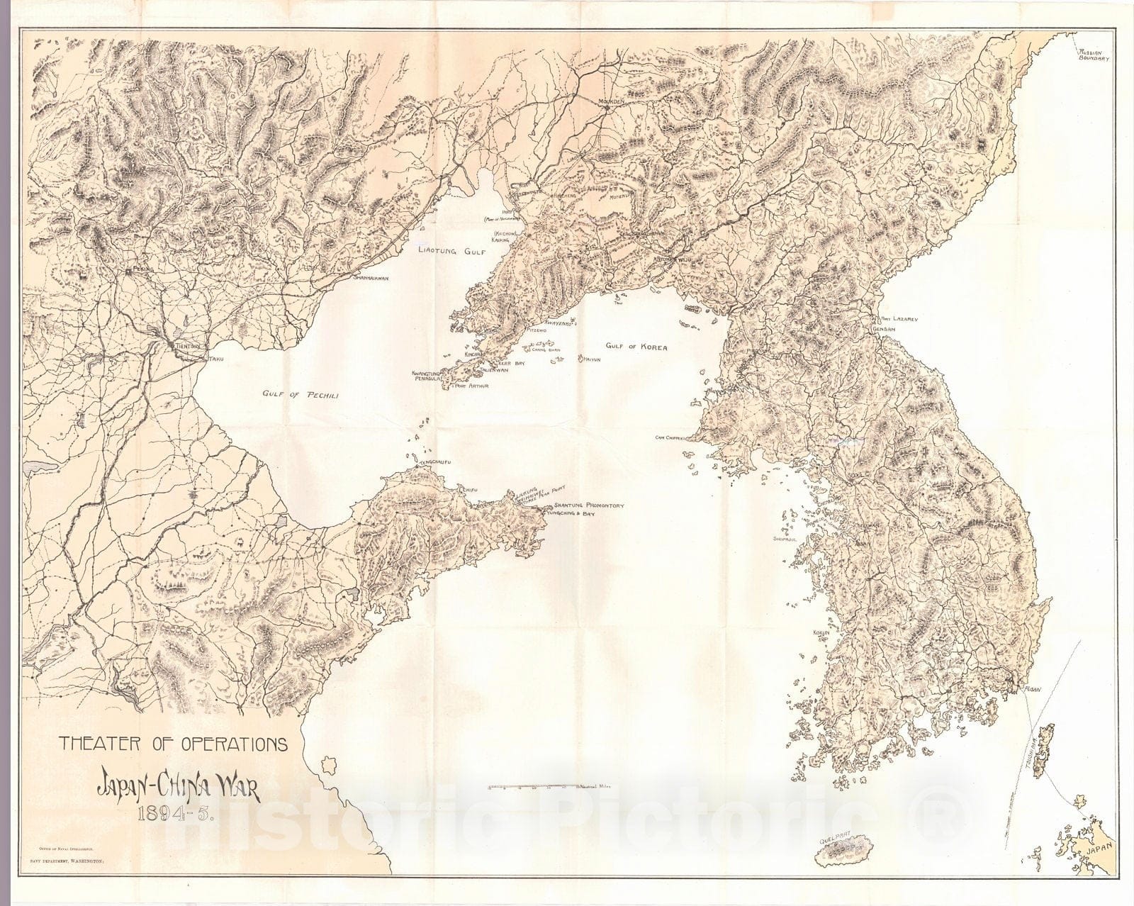 Vintage Map | 1896 Theater of Operations Japan-China War 1894-5 | Office of Naval Intelligence