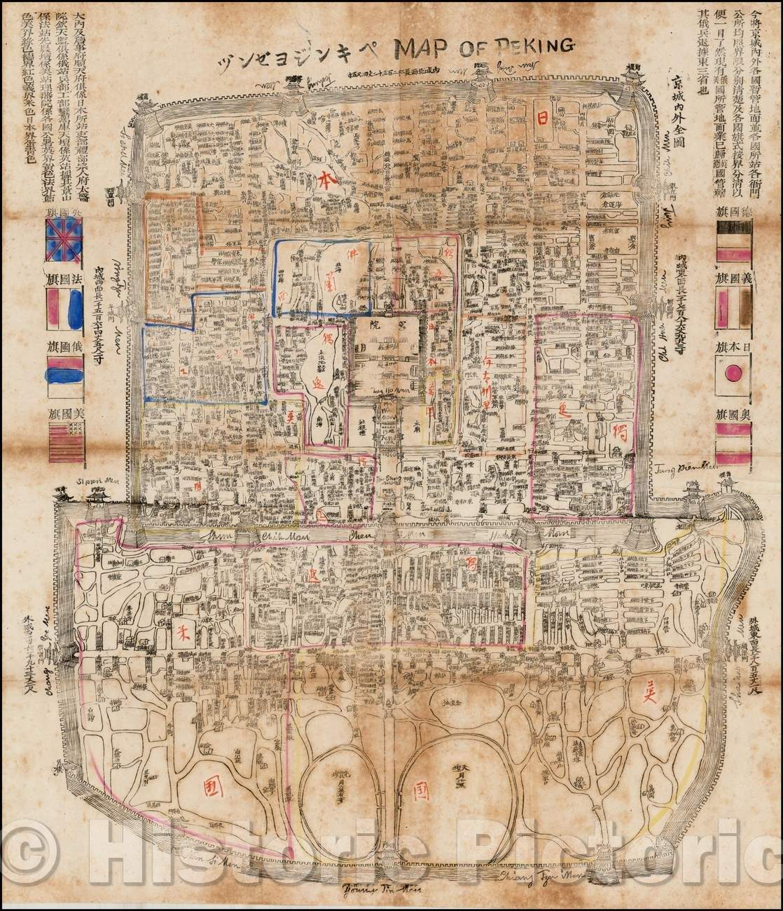 Historic Map - Boxer Rebellion Map of Beijing Map of Peking, 1900, Japanese Imperial Army - Vintage Wall Art