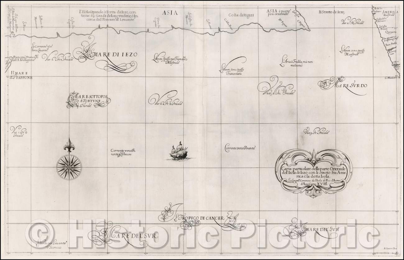 Historic Map - Carta particolare della parte Orientale del' Isola di Iezo/Map of the southern coast of Japan and the Northwest Coast of America, 1661 - Vintage Wall Art