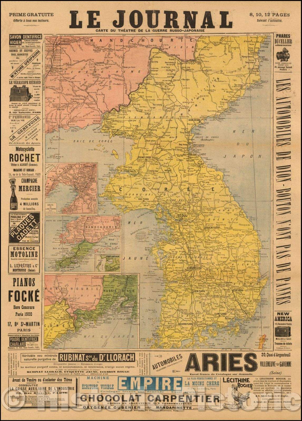 Historic Map - Carte Du Theatre de la Guerre Russo-Japonaise (French Automobile and Cycling of the :: of the Theater of War during Russo-Japanese War, 1904 - Vintage Wall Art