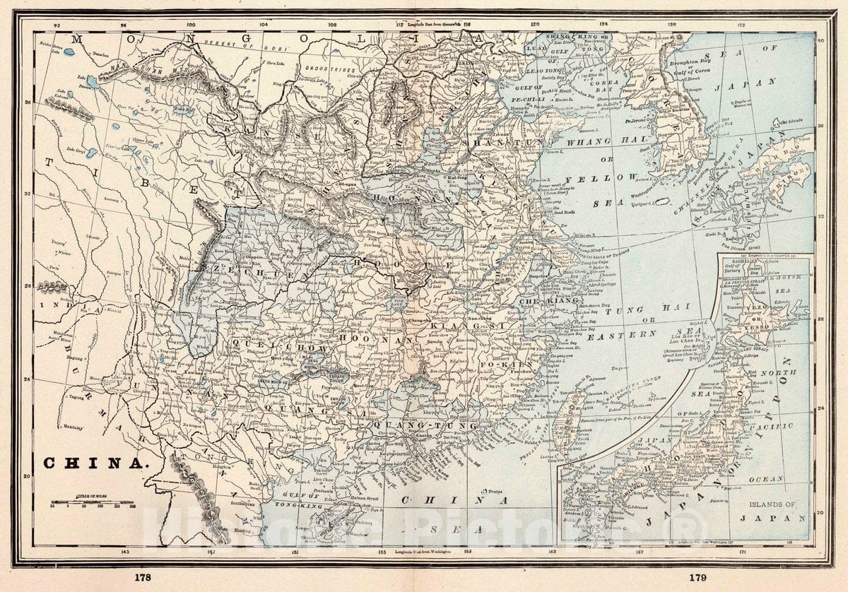 Historic Map : China. The Columbian World's Fair atlas (inset) Islands of Japan, 1893 Atlas - Vintage Wall Art