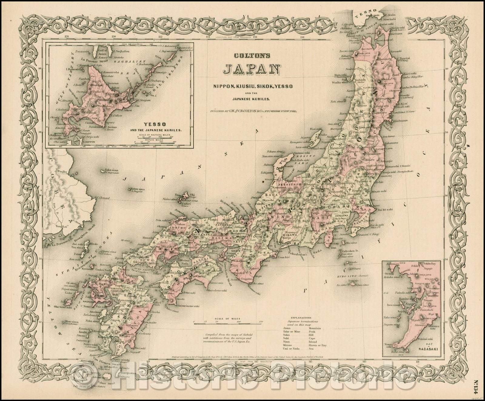 • .Historic Map - Colton's Japan Nippon, Kiusiu, Sikok,Yesso and the Japanese Kuriles, 1865, G.W. & C.B. Colton - Vintage Wall Art
