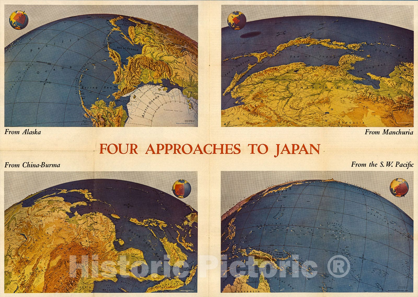 Historic Map : Four Approaches to Japan: From Alaska, China-Burma, Manchuria, S.W. Pacific. Newsmap. Monday, May 8, 1944., 1944, Vintage Wall Decor