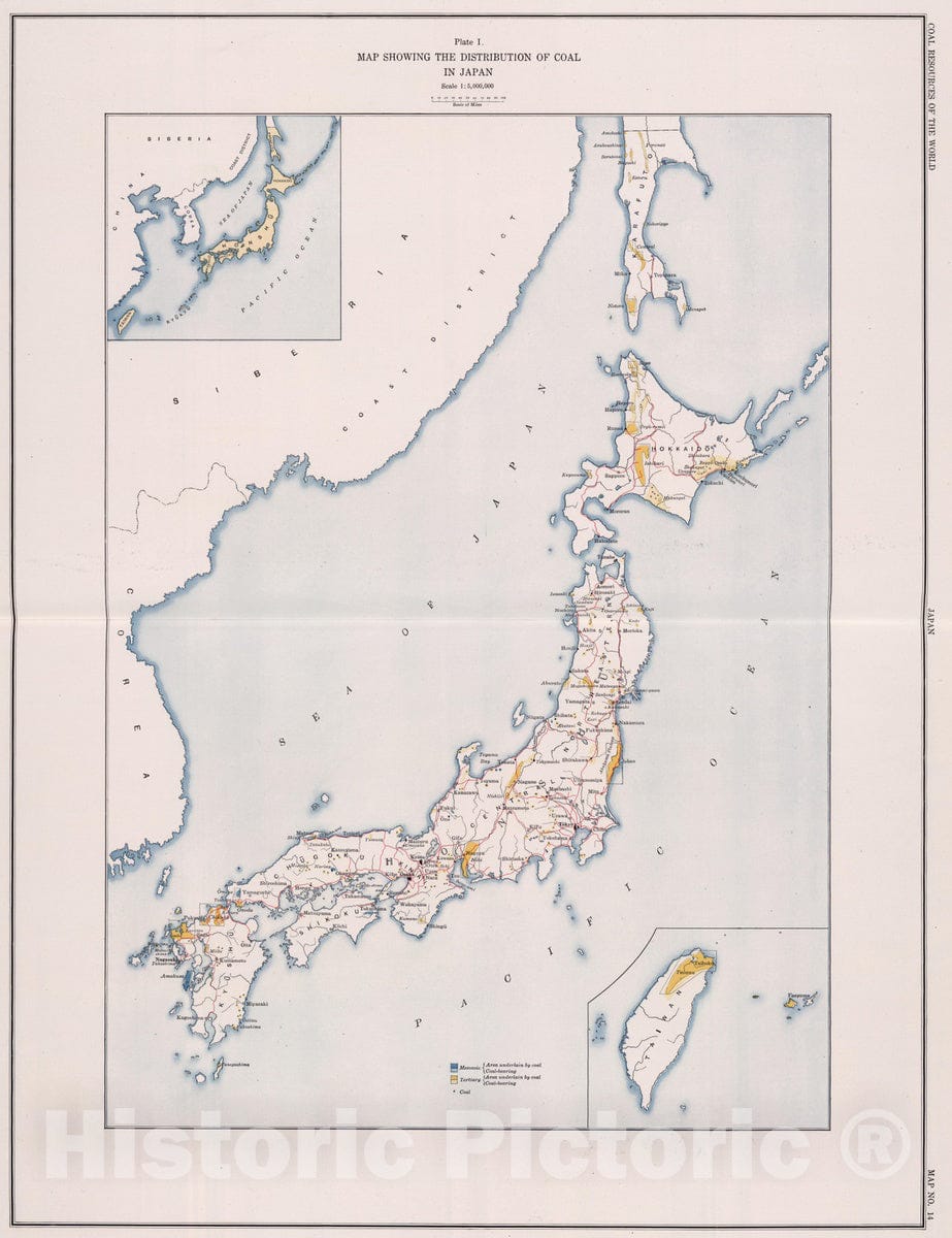 Historic Map : Geologic Atlas - 1913 Japan. Coal Resources of the World. - Vintage Wall Art