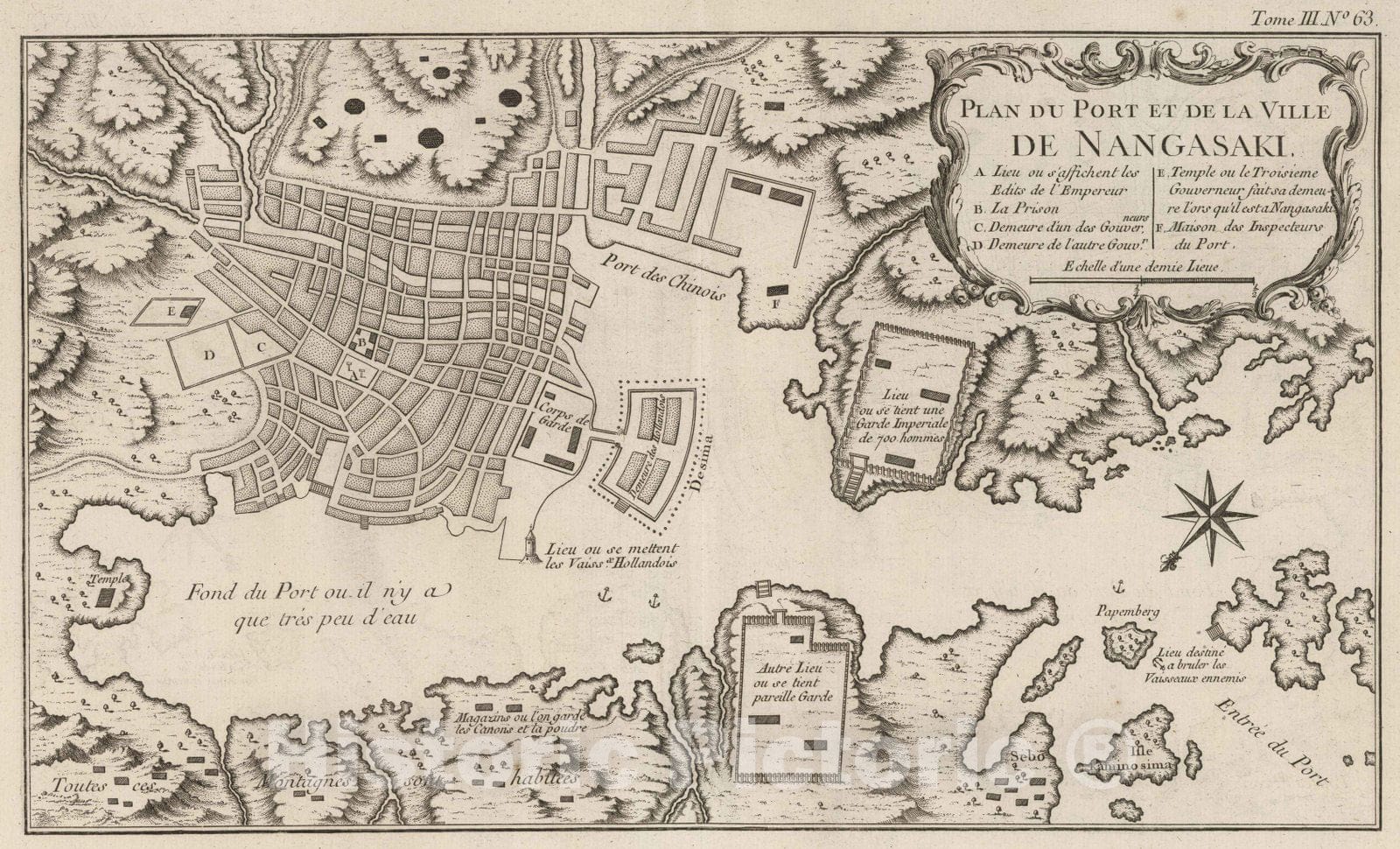 Historic Map : Japan, 1764 Plan de la ville et du port de Nangasaki , Vintage Wall Art