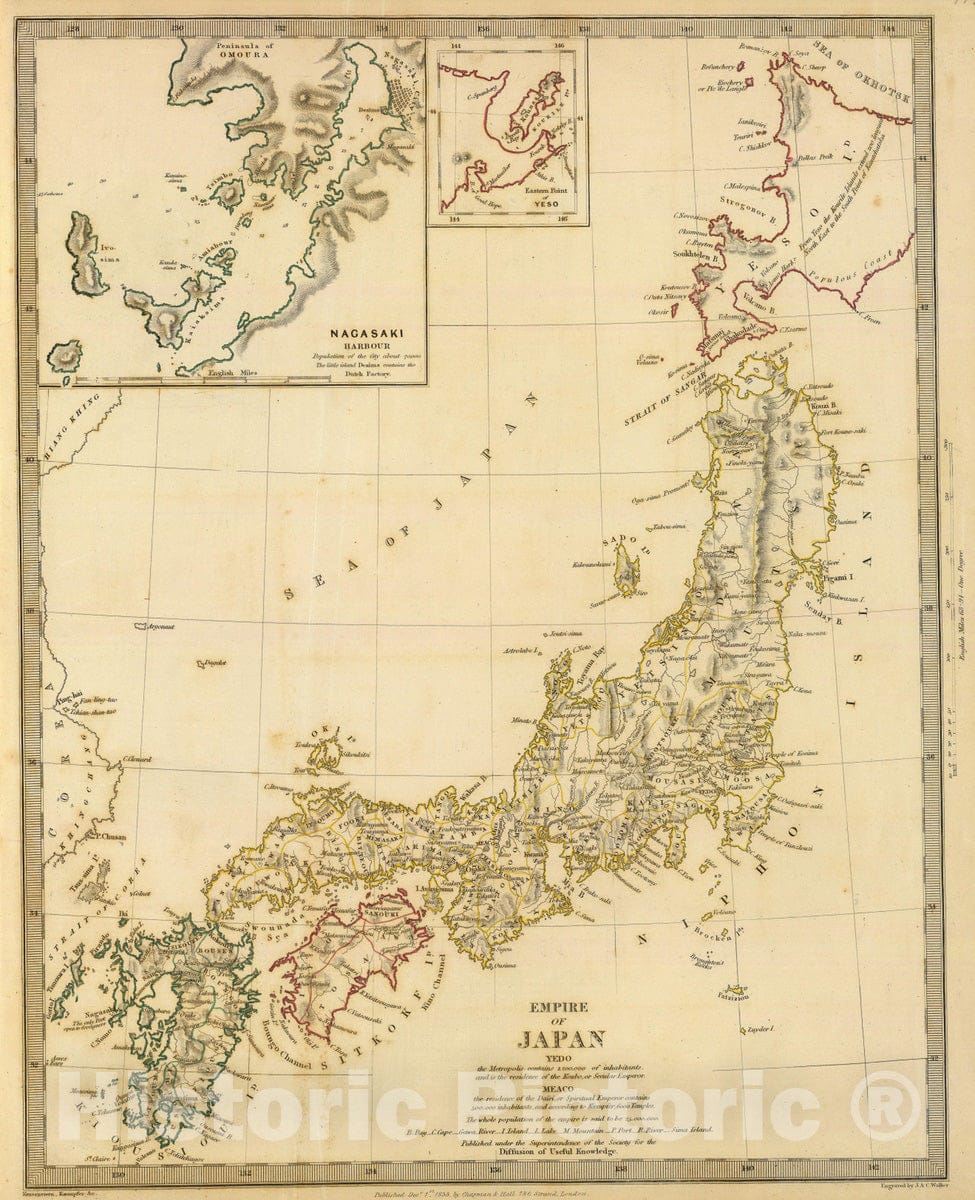 Historic Map : Japan, Nagasaki-ken (Japan), Nagasaki-shi Region (Japan) 1835 Japan, Nagasaki. , Vintage Wall Art