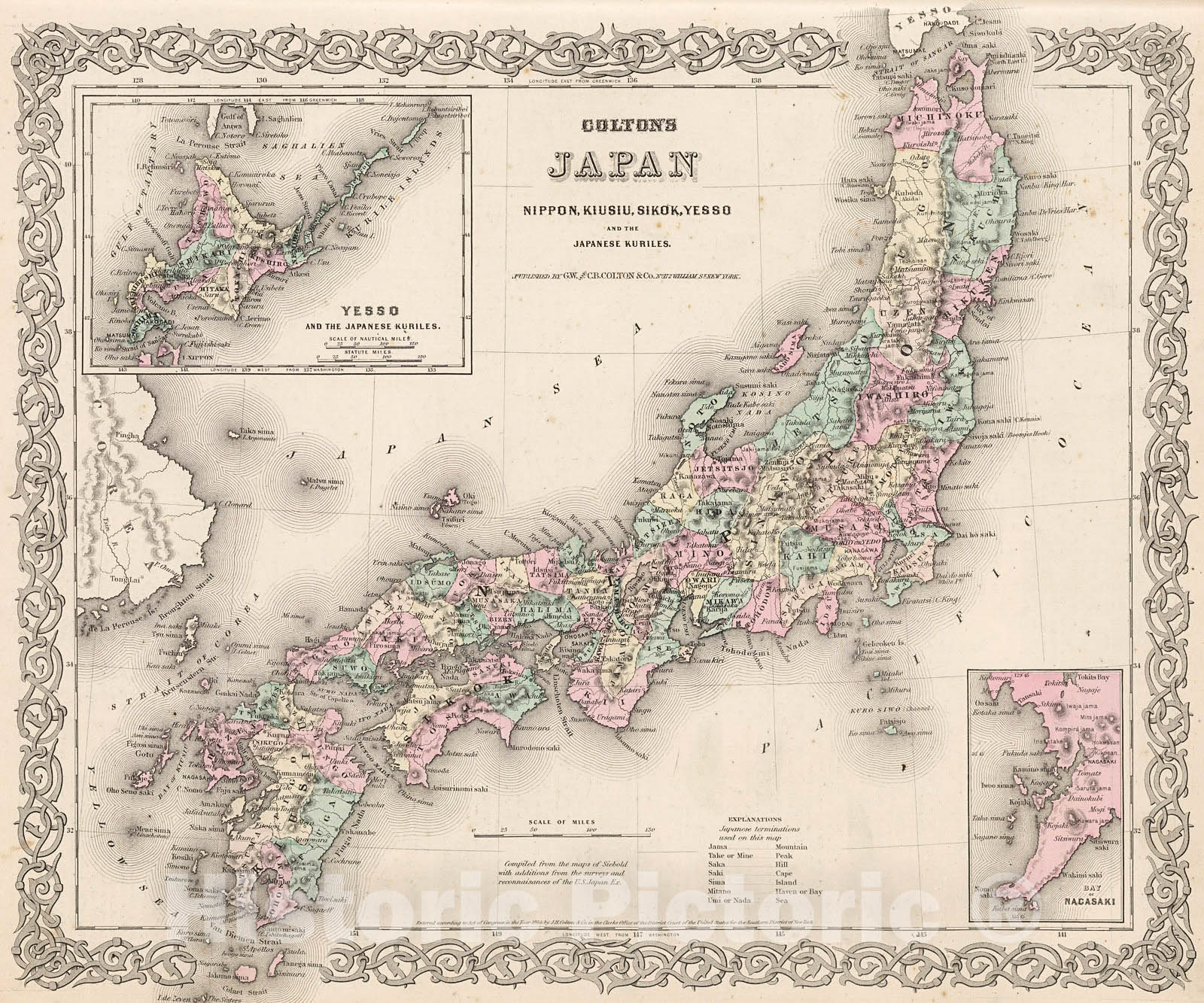 Historic Map : Japan, Nippon, Kiusiu, Sikok, Yesso and the Japanese Kurills., 1880, Vintage Wall Decor