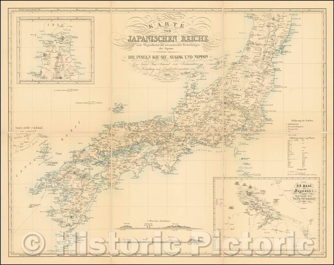 Historic Map - Karte vom Japanischen Reiche nach Originalkarten und astronomischen Beobachtungen der Japaner. :: Japan, Honshu and all of Shikoku and Kyushu, 1840 - Vintage Wall Art