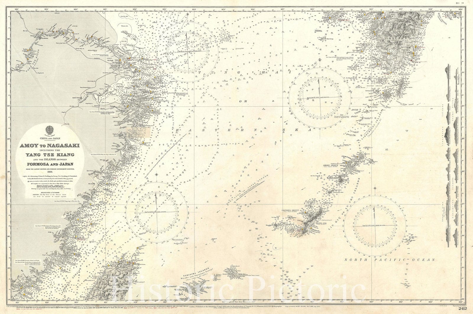 • .Historic Map : Nautical Chart East China Sea from Taiwan to Japan, 1926, Vintage Wall Art