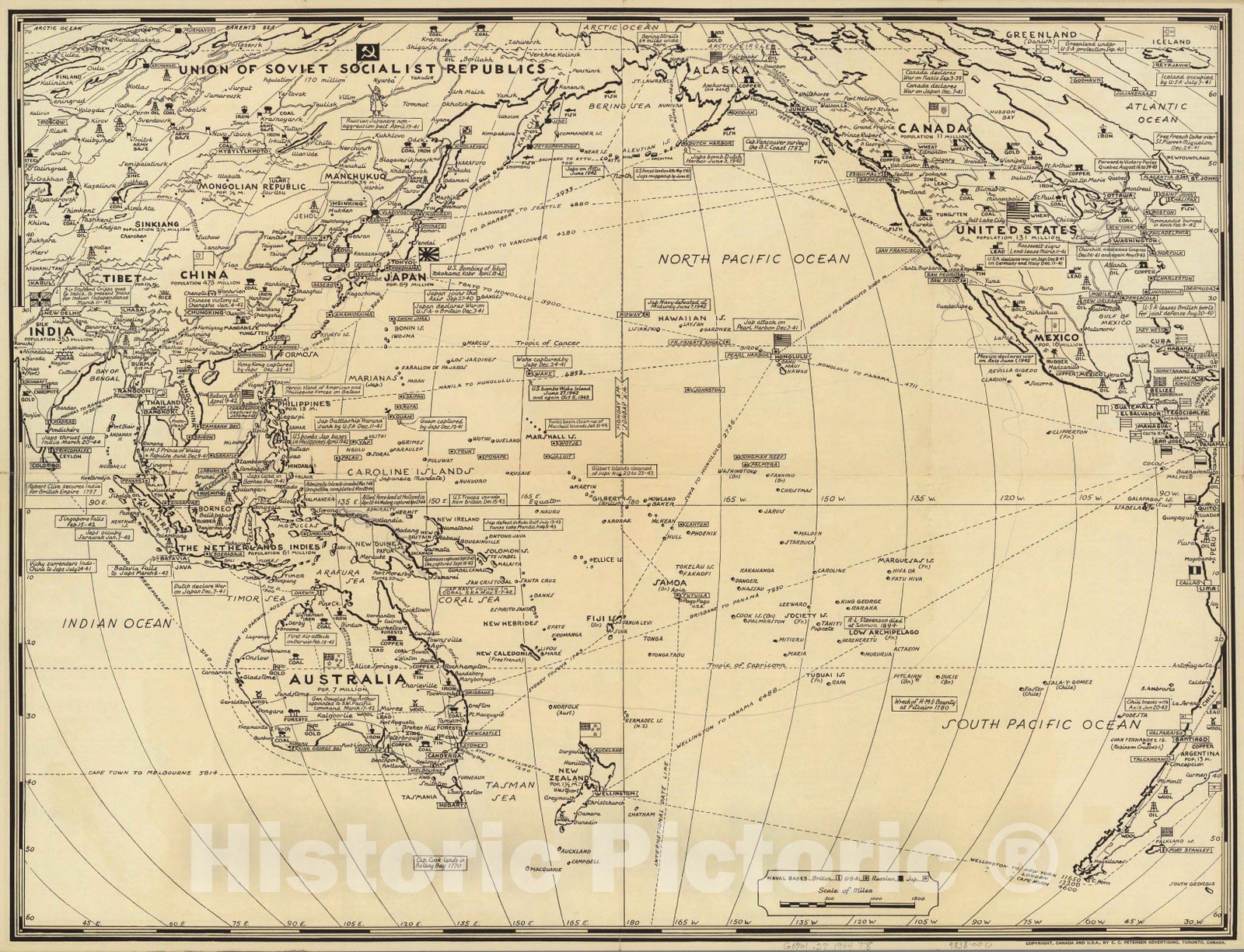 Historic Map : Naval bases, British, U.S.A, Russian and Japanese. Stanley turner, 44 1944 - Vintage Wall Art